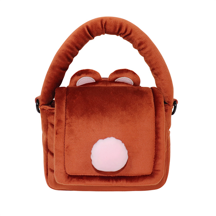 定制羊蓋絨手拎包搖粒絨熊貓可愛充棉手提包單肩包毛絨公仔包