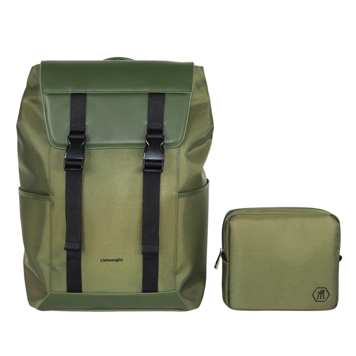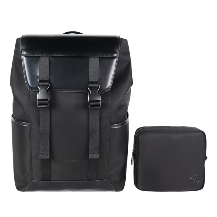 通過Bsci驗廠定制水洗尼龍水松料背包 可拆卸前袋 pu皮翻蓋平臺展業電腦包