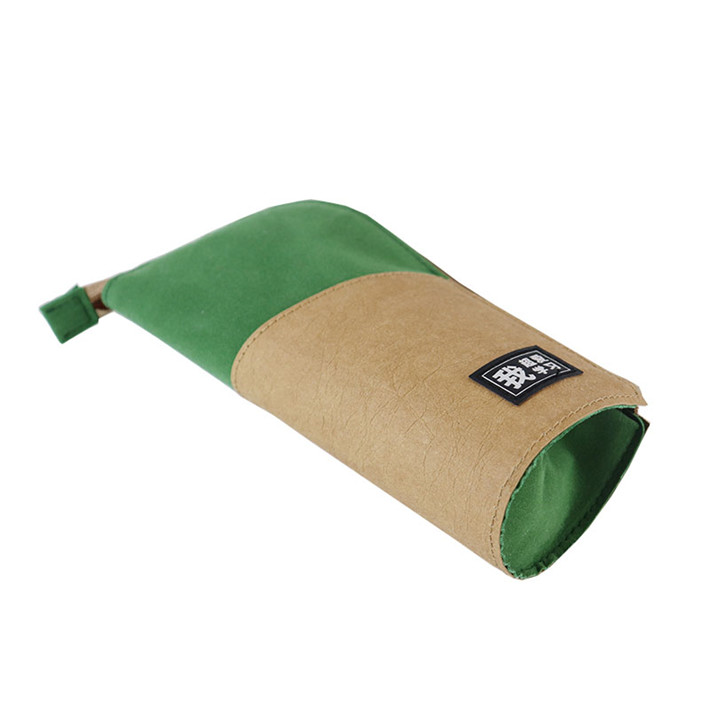 新款極簡主義站立筆筒多功能進口牛皮紙拼接桃皮絨拉鏈包定制