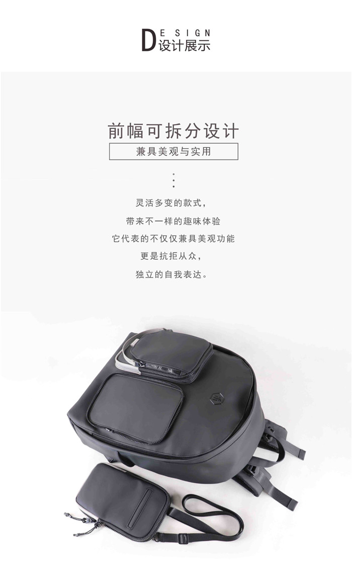 一包兩用,前幅可拆卸前袋拆下即可當小斜挎包使用方便日常出行,大開口,超大容量,超能裝。