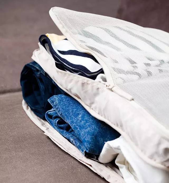 衣物袋是雙層,可以把褲子和上衣分開裝,一般可以裝2-3條褲子,3-4件T恤。而且,上層是可視型網格設計,方便看清里面的衣物,找起來也方便。